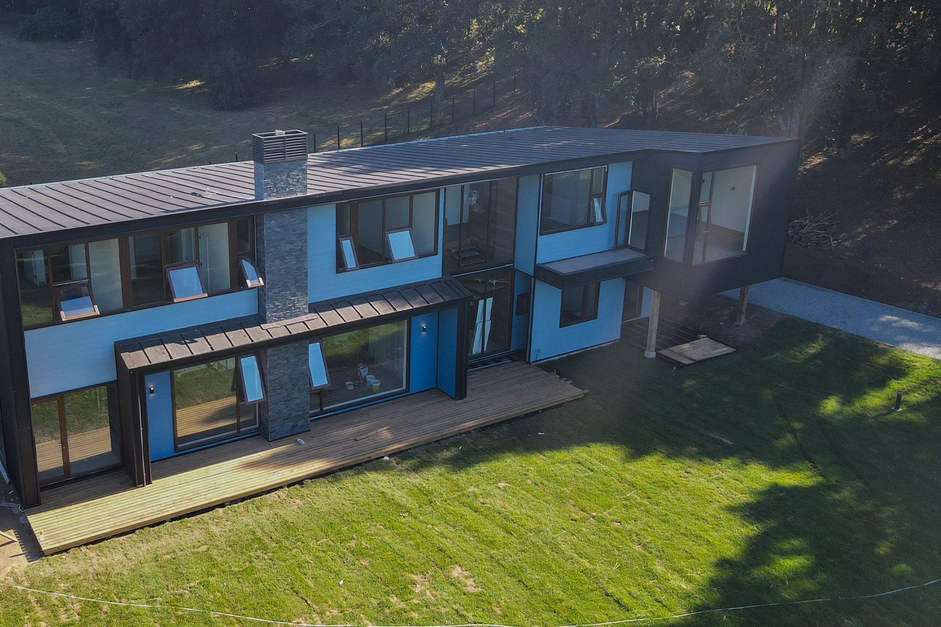 Con una superficie construida de 375 m², esta vivienda ha sido diseñada para ofrecer espacios amplios, funcionales y bien iluminados, integrándose armónicamente con el paisaje del sur de Chile. La propuesta arquitectónica busca lograr un equilibrio entre diseño contemporáneo y calidez, utilizando materiales nobles y soluciones constructivas de alta calidad.